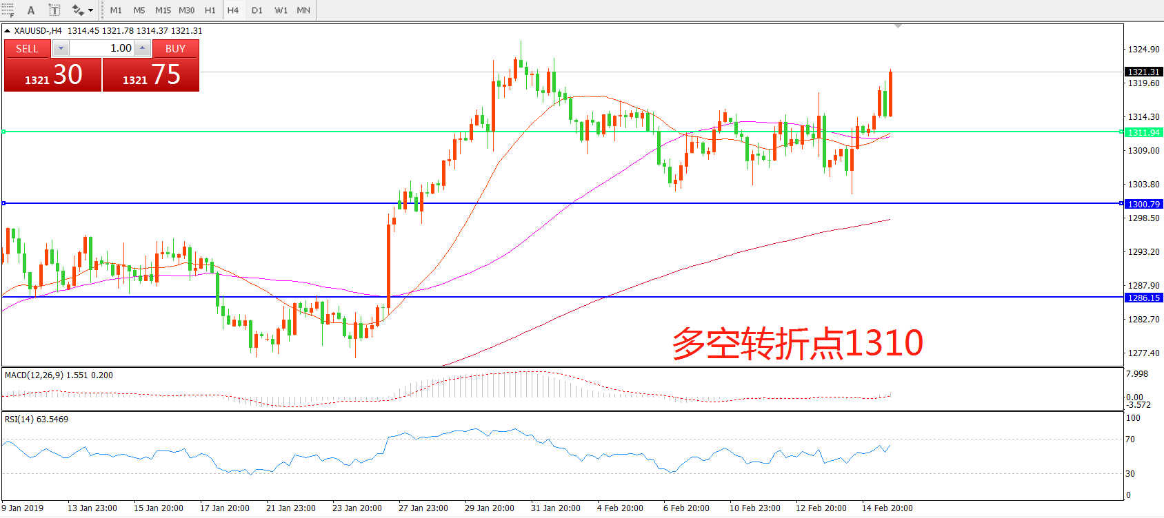 多空转折点:1310.00