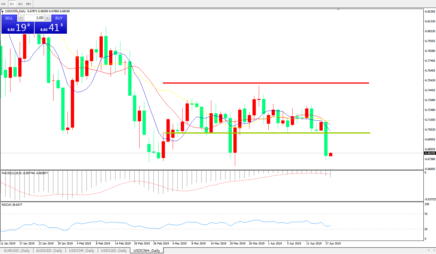 交易策略: 在6.6990之下,看跌,目标价位为6.6730,然后为6.6325 。