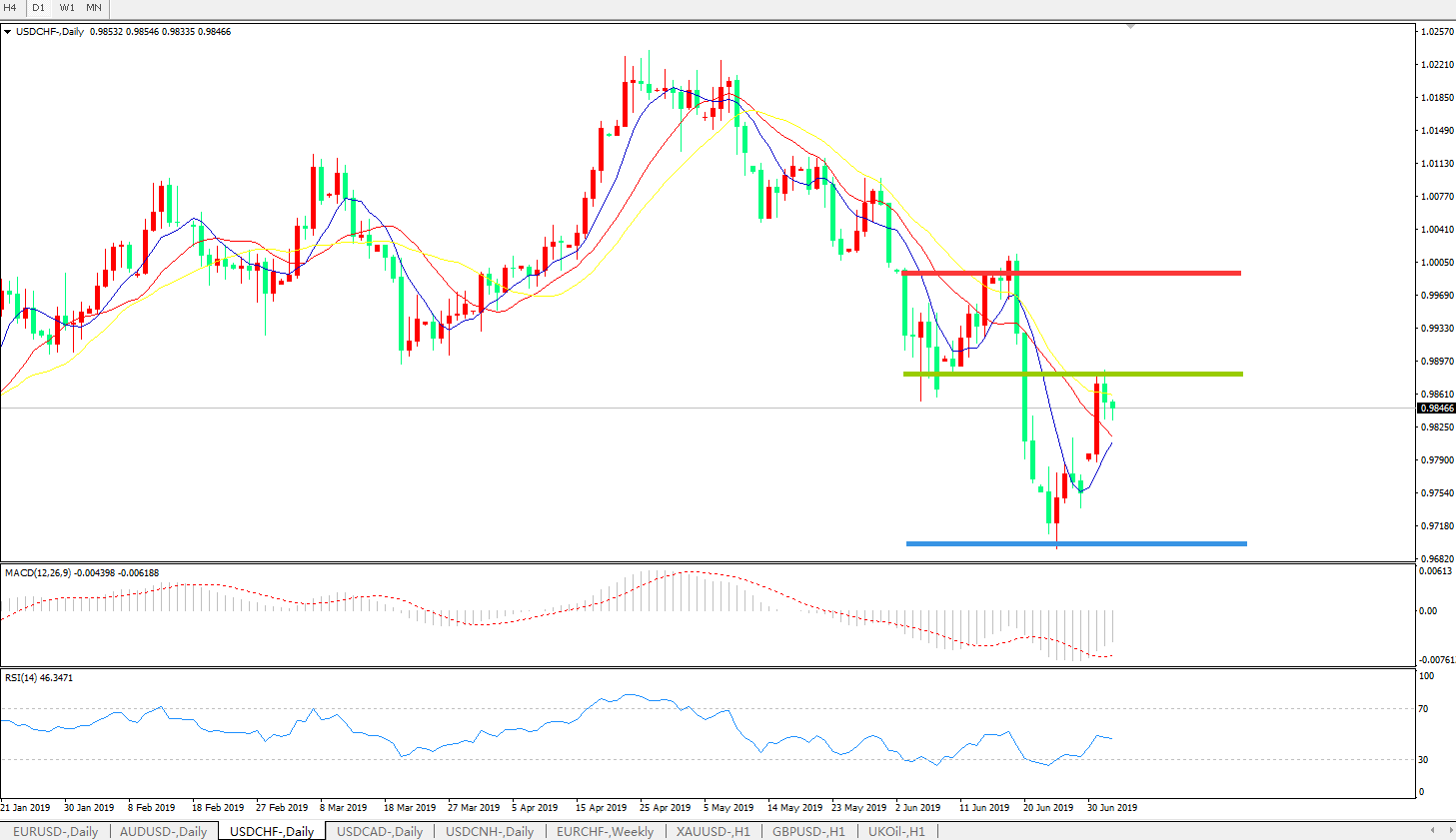 支撑位:0.9700、0.9650
