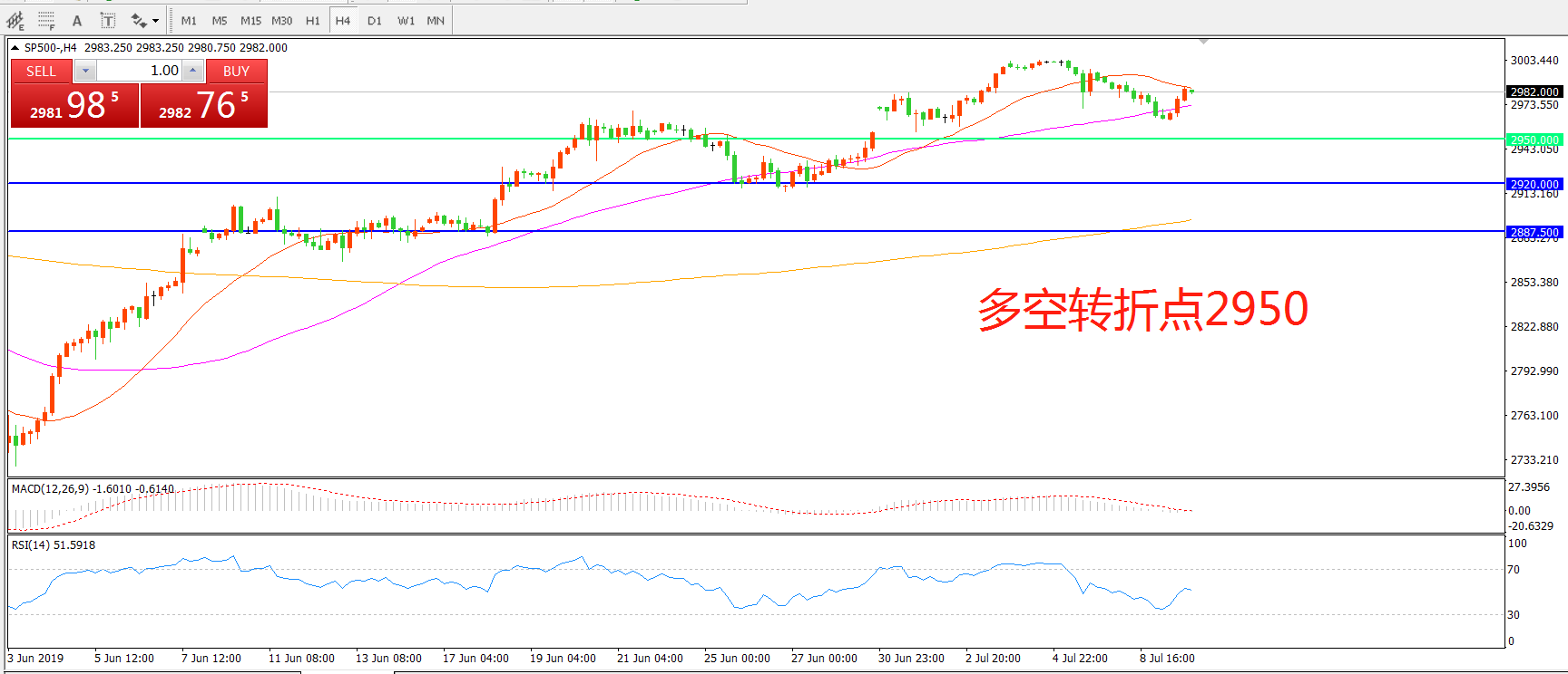 多空转折点:2950.00