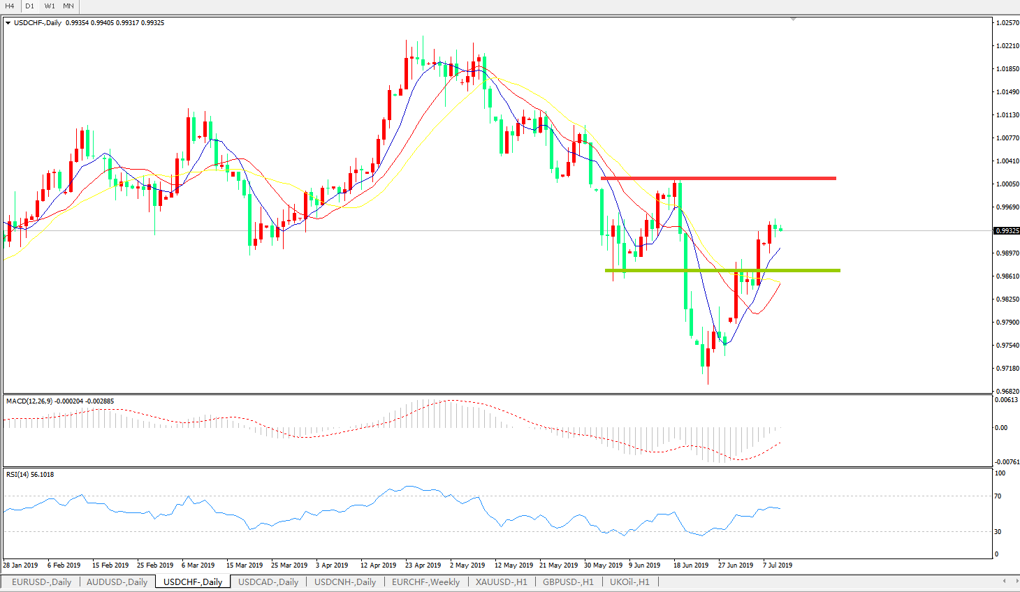 美元兑瑞郎USDCHF 日线图: