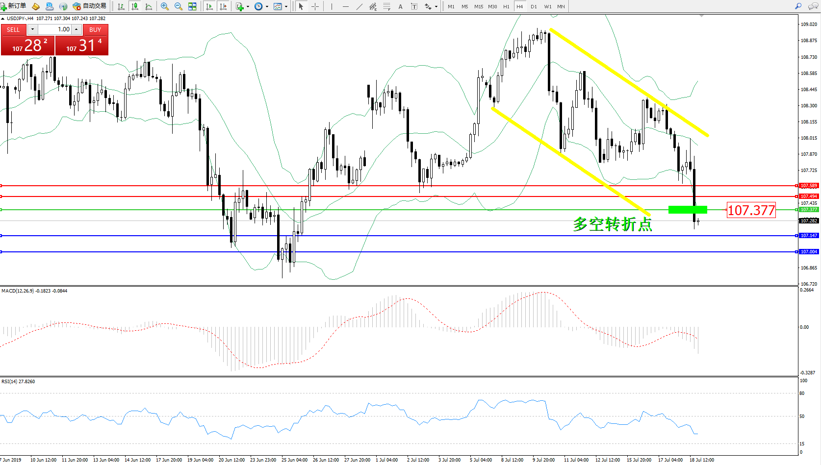 交易策略:107.377下方看跌,目标107.147107.004