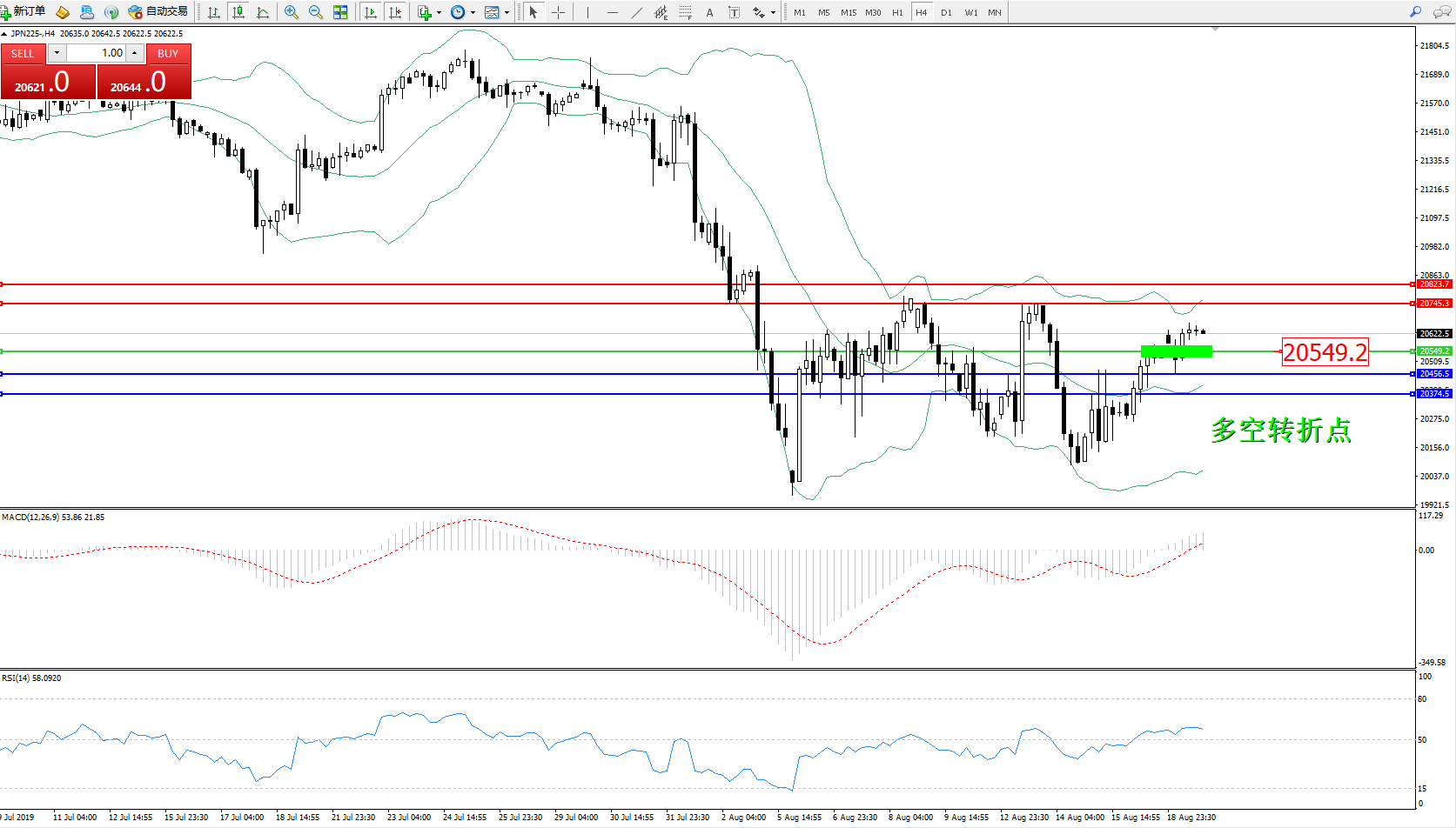 日经225指数819日(周一)收盘上涨197.65点,涨幅0.97%,报20566.50点。7月日本对美国出口量上升8.4%6月日本对美国出口量上升4.9%7月数据表明日本对美国出口连续10个月上升,日美贸易顺差较上年同期增长15.6%,录得5,794亿日元。日本对美出口持续增长可能会让特朗普不满,据悉,日本首相安倍晋三和美国总统唐纳德特朗普在联合国大会(UNGA)会议期间会晤,美国和日本预计将在9月达成全面贸易协议。