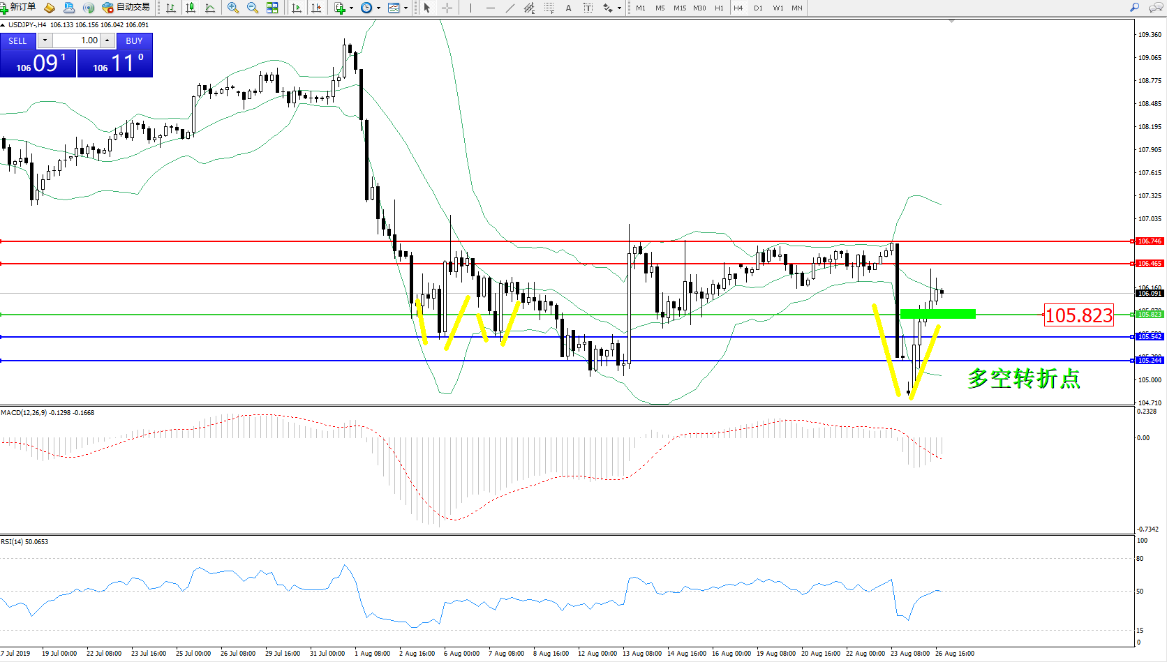 备选策略:105.823下方看跌,目标105.542105.244