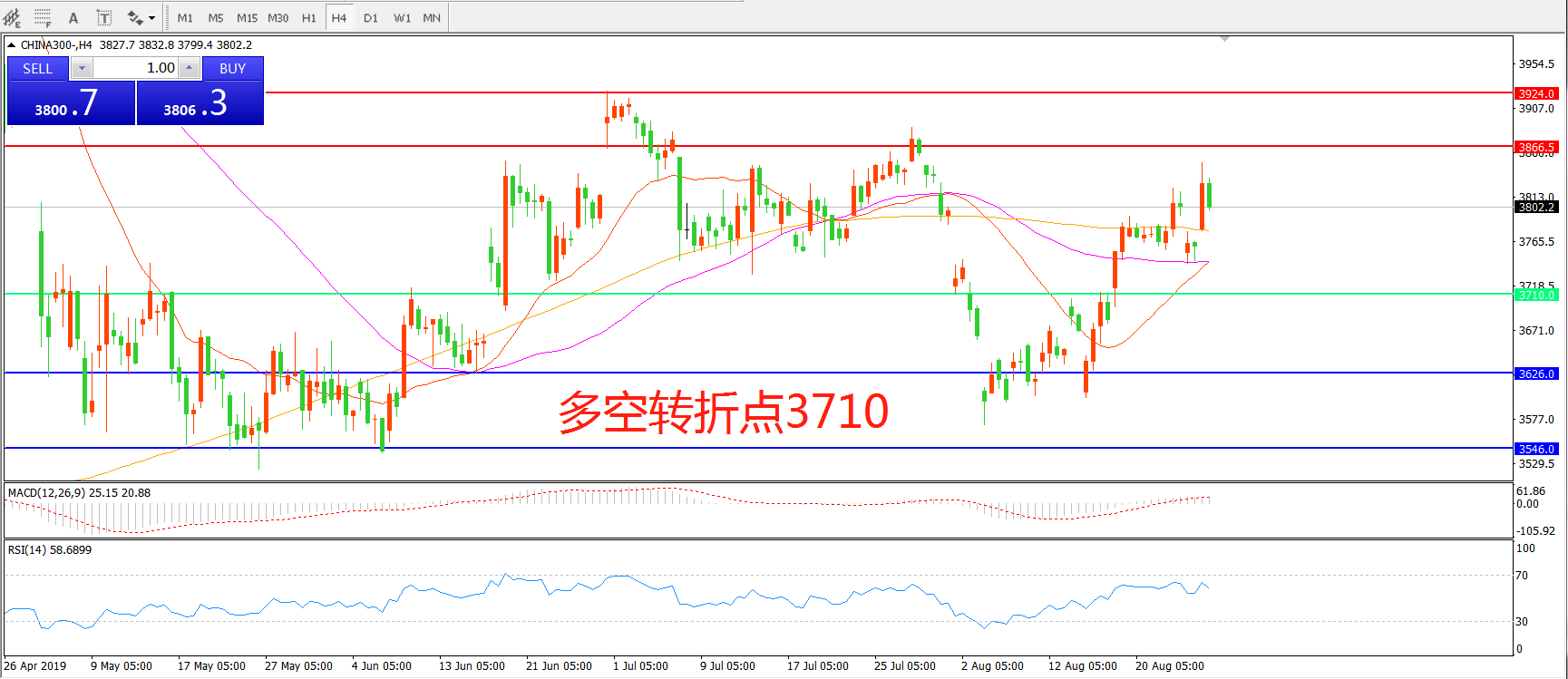 多空转折点:3710.00