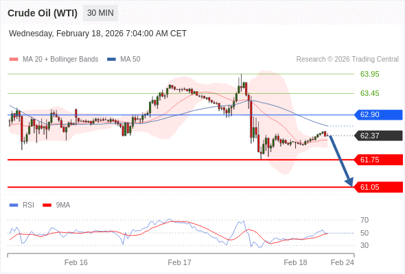 在 62.90 之下,看跌,目标价位为 61.75 ,然后为 61.05 。