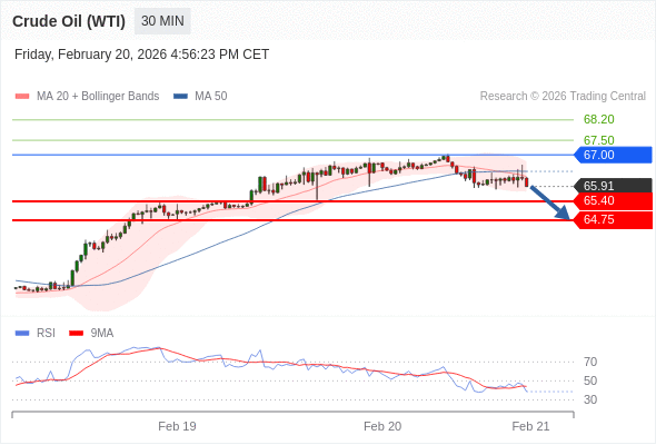 在 67.00 之下,看跌,目标价位为 65.40 ,然后为 64.75 。