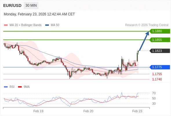 在 1.1775 之上,看涨,目标价位为 1.1855 ,然后为 1.1880 。