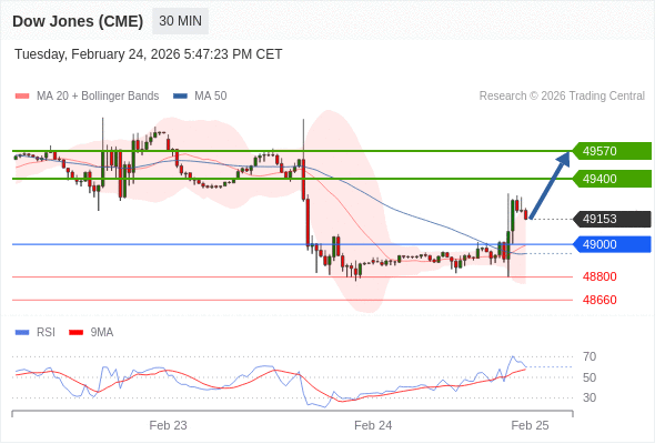 在 49000 之上,看涨,目标价位为 49400 ,然后为 49570 。