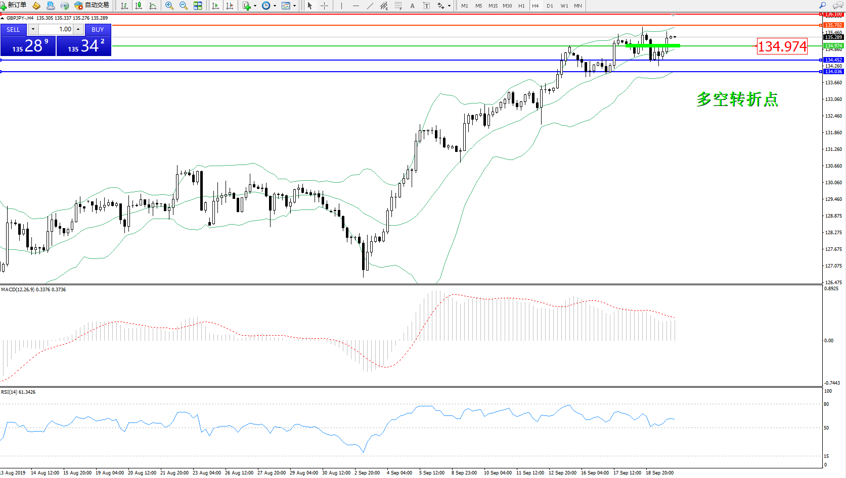 交易策略:134.974下方看跌,目标134.452134.036
