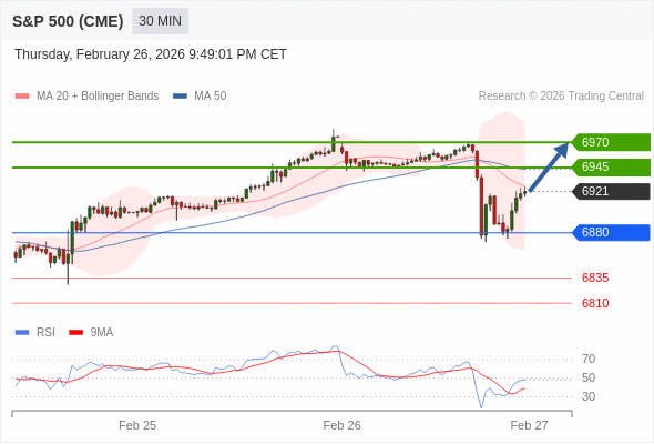 在 6880 之上,看涨,目标价位为 6945 ,然后为 6970 。