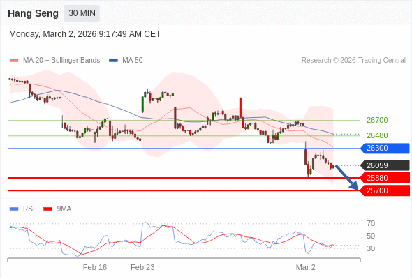 在 26300 之下,看跌,目标价位为 25880 ,然后为 25700 。
