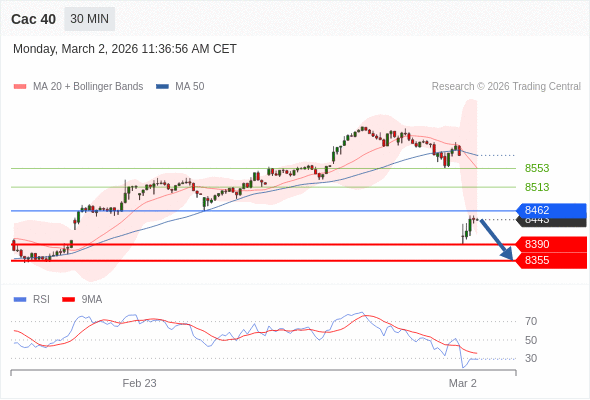 在 8462 之下,看跌,目标价位为 8390 ,然后为 8355 。