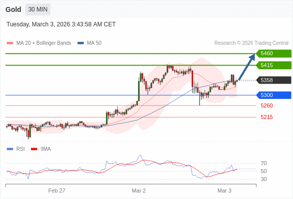 在 5300 之上,看涨,目标价位为 5415 ,然后为 5460 。