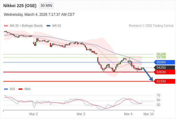 在 55000 之下,看跌,目标价位为 53630 ,然后为 52330 。