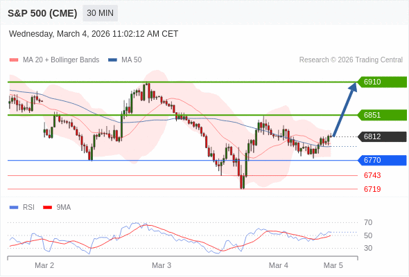 在 6770 之上,看涨,目标价位为 6851 ,然后为 6910 。