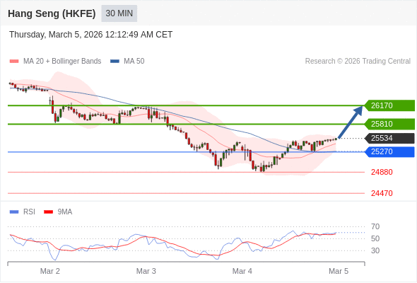在 25270 之上,看涨,目标价位为 25810 ,然后为 26170 。