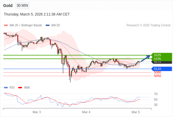 在 5110 之上,看涨,目标价位为 5195 ,然后为 5225 。
