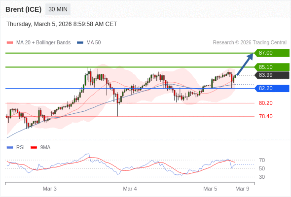 在 82.20 之上,看涨,目标价位为 85.10 ,然后为 87.00 。