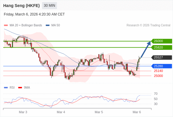 交易策略: 在 25280 之上,看涨,目标价位为 25820 ,然后为 26000 。