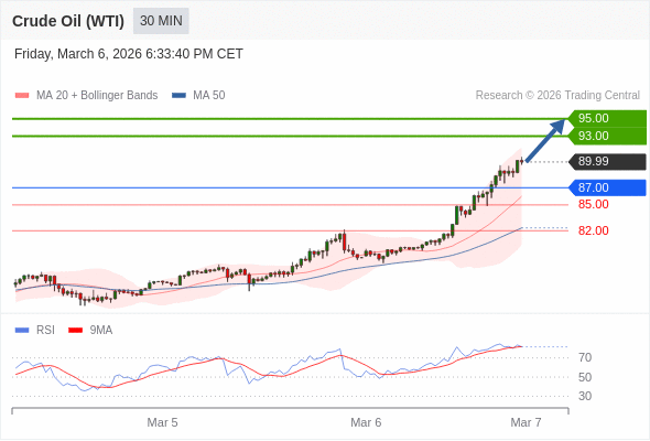 在 87.00 之上,看涨,目标价位为 93.00 ,然后为 95.00 。