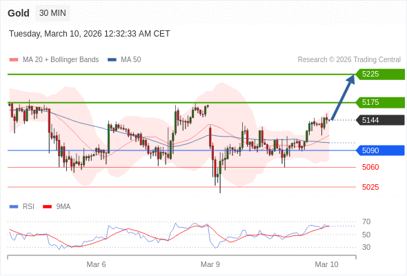 在 5090 之上,看涨,目标价位为 5175 ,然后为 5225 。