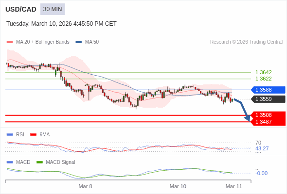 美元/加元 当日内 : 看跌,在 1.3588 之下。