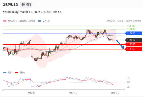 在 1.3455 之下,看跌,目标价位为 1.3385 ,然后为 1.3355 。