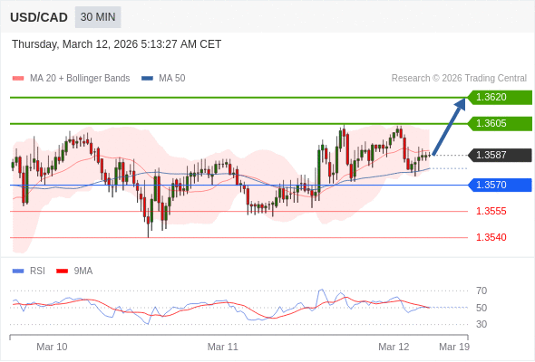 在 1.3570 之上,看涨,目标价位为 1.3605 ,然后为 1.3620 。