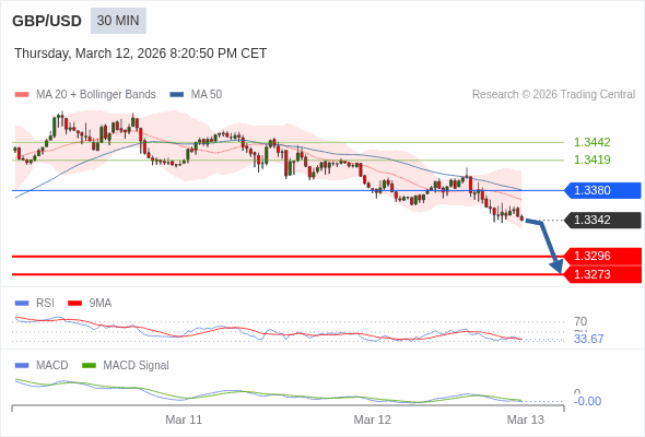 英镑/美元 当日内 : 看跌,在 1.3380 之下。