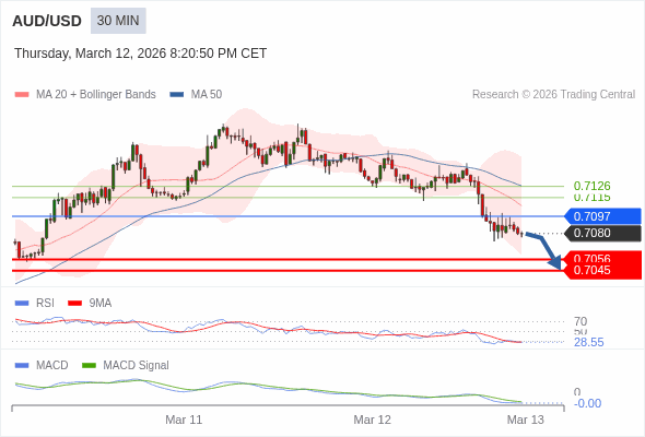 交易策略: 看跌,在 0.7097 之下。
