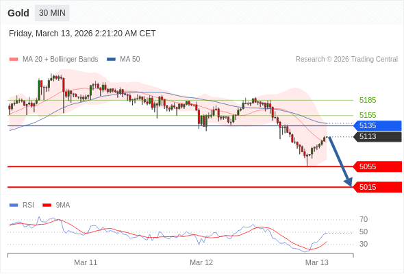在 5135 之下,看跌,目标价位为 5055 ,然后为 5015 。