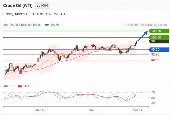 在 95.00 之上,看涨,目标价位为 100.50 ,然后为 103.50 。