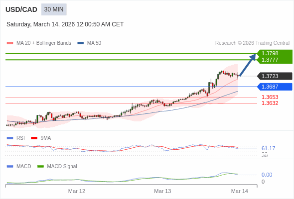 交易策略: 看涨,当 1.3687 为支撑位,目标定在1.3798。