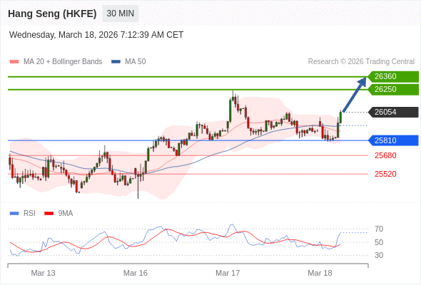 在 25810 之上,看涨,目标价位为 26250 ,然后为 26360 。