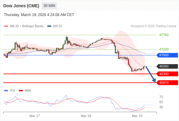 在 47000 之下,看跌,目标价位为 46300 ,然后为 45970 。