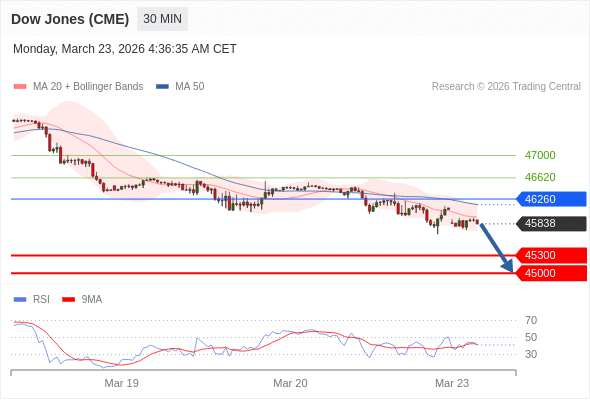 在 46260 之下,看跌,目标价位为 45300 ,然后为 45000 。