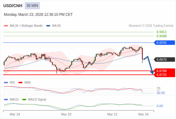美元/人民币 当日内 : 看跌,当 6.9242 为阻力位。