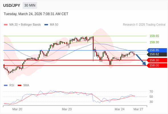 交易策略: 在 158.85 之下,看跌,目标价位为 158.30 ,然后为 158.00 。
