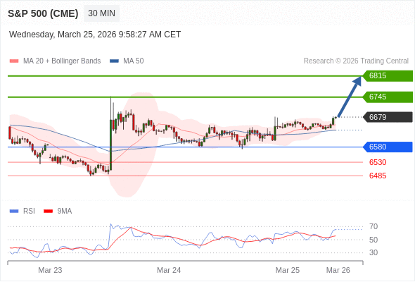 在 6580 之上,看涨,目标价位为 6745 ,然后为 6815 。