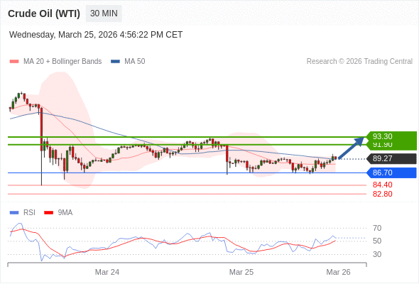 在 86.70 之上,看涨,目标价位为 91.90 ,然后为 93.30 。