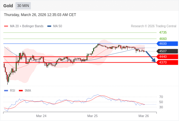 在 4600 之下,看跌,目标价位为 4400 ,然后为 4370 。