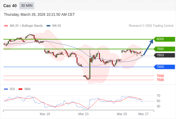 Cac 40 当日内: 期待7880。