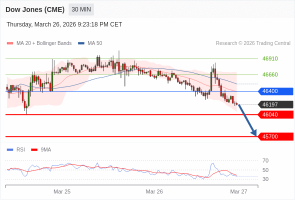 在 46400 之下,看跌,目标价位为 46040 ,然后为 45700 。