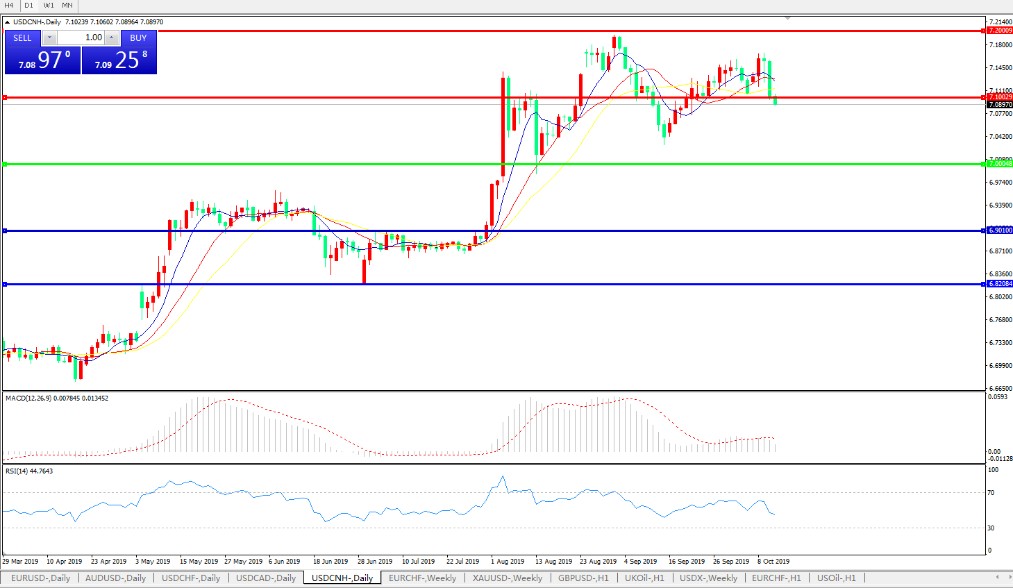 交易策略: 在7.0000之上,看涨,目标价位为7.1000,然后为7.2000。