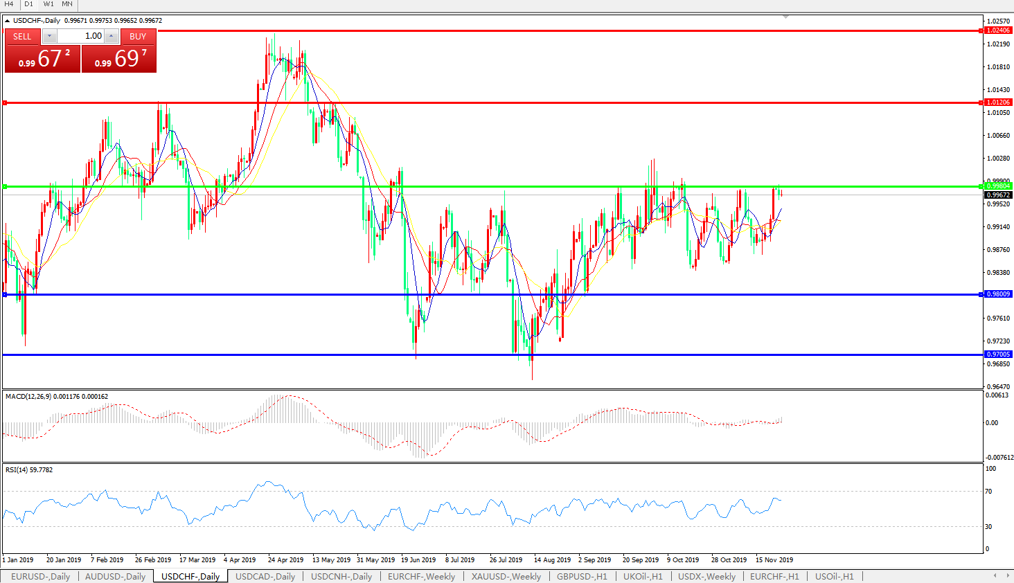 美元兑瑞郎USDCHF 日线图: