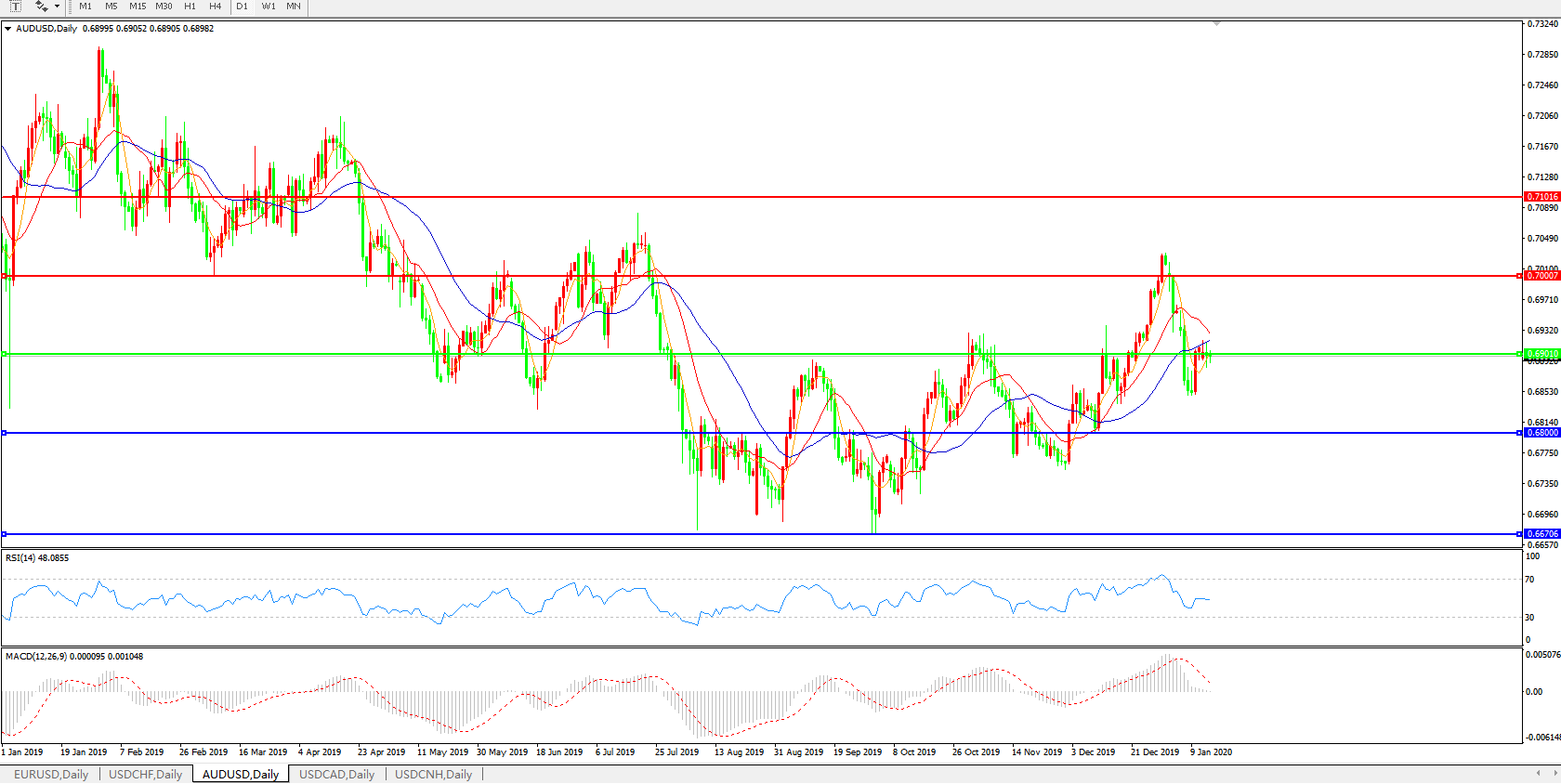 备选策略:0.6900上方看涨,目标0.7000、0.7100