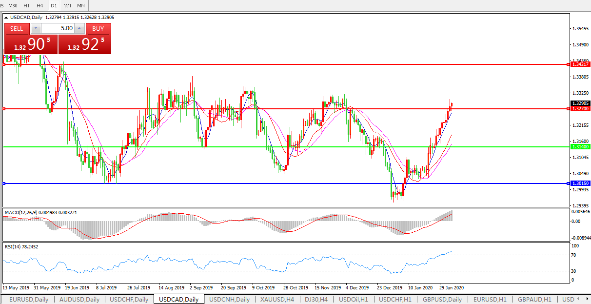技术面简析:日线图均线呈多头排列,汇价上攻态势保持良好,MACD开始走升且量能0轴上方持续放量,RSI震荡中走高,预计汇价短期大概率将延续整理上行态势。