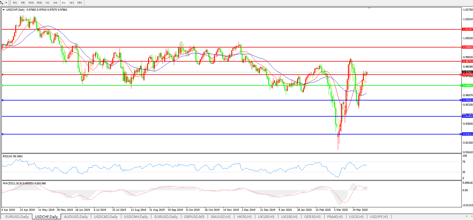 美元兑瑞郎USDCHF 日线图: