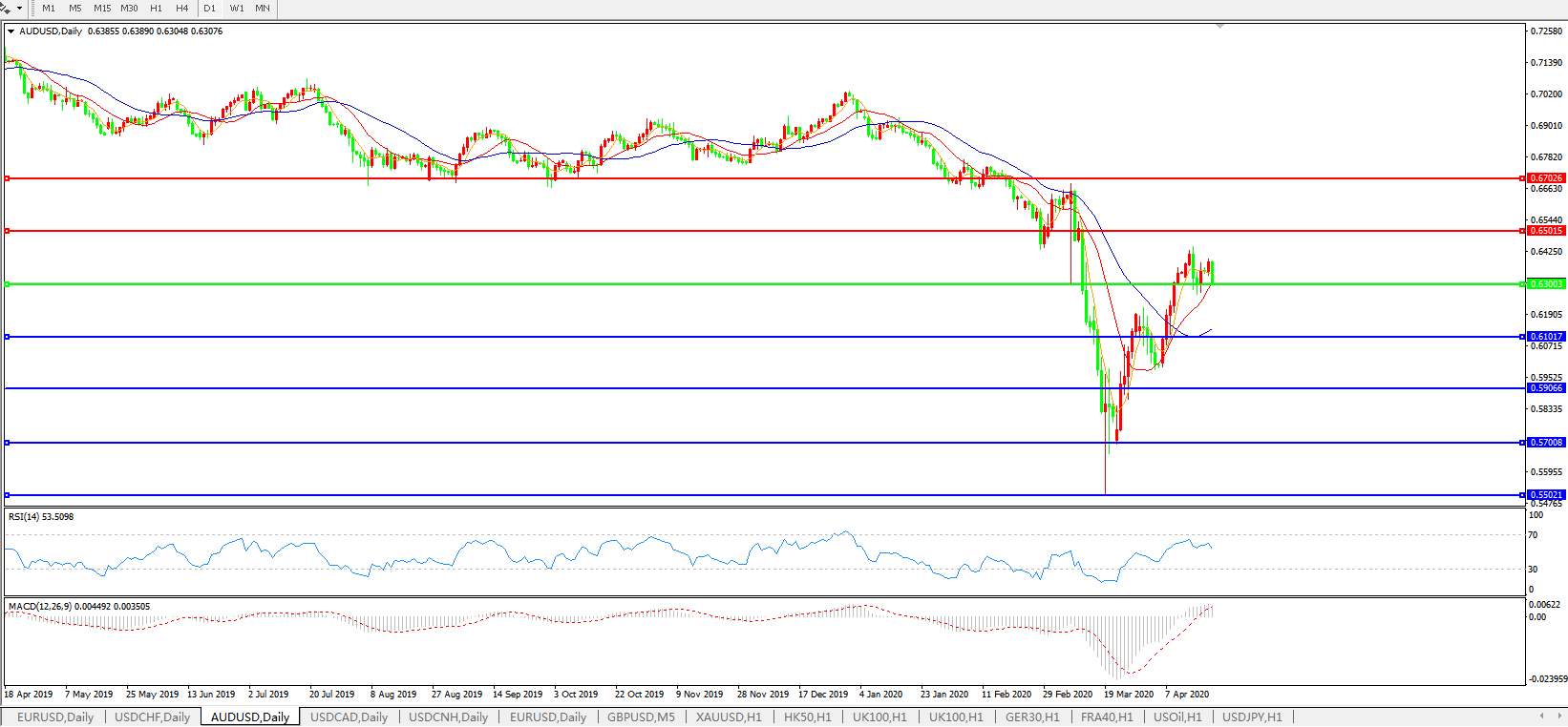 澳元兑美元AUDUSD 日线图: